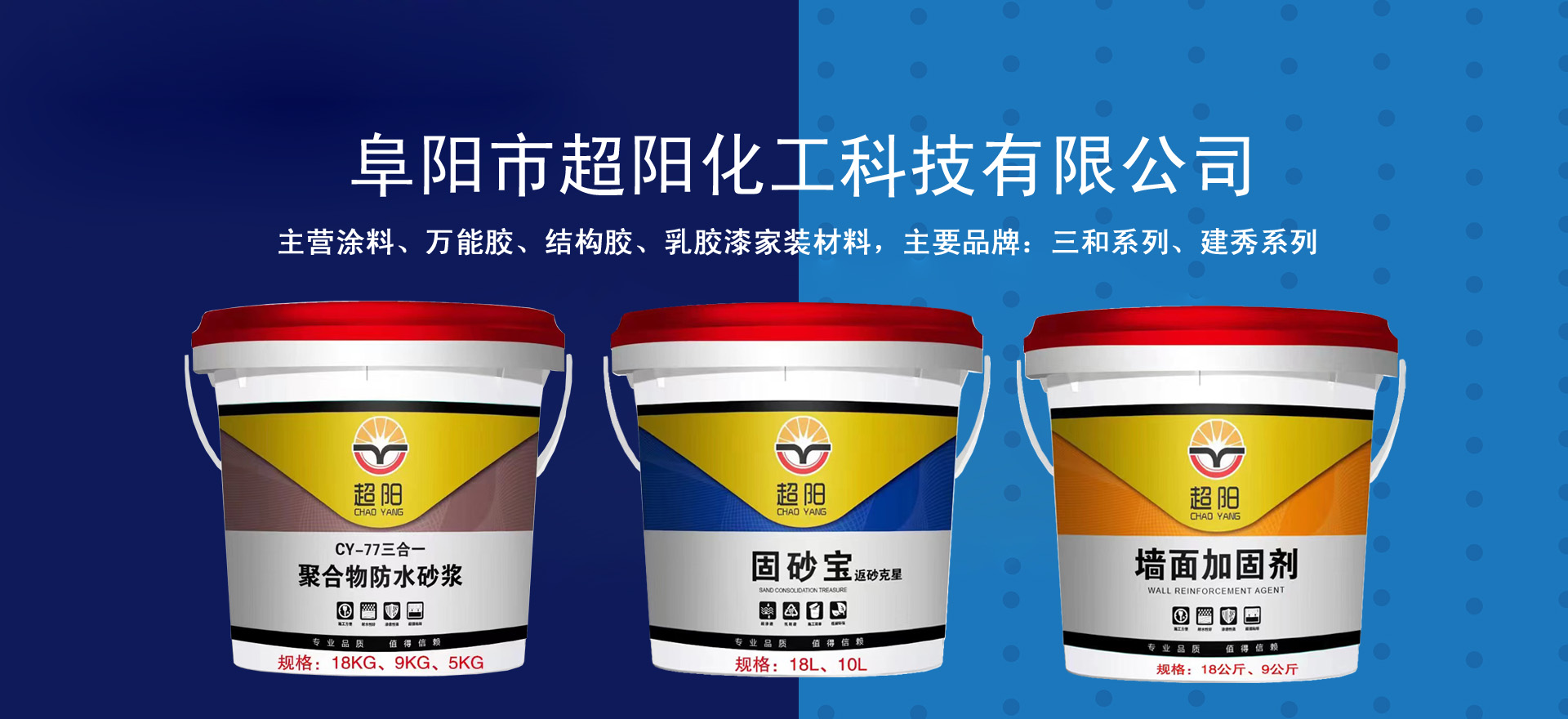 我單位系阜陽市超陽化工科技有限公司,注冊資本600萬元,注冊地址:安徽省阜陽市潁泉區(qū)潘寨路199號(阜陽循環(huán)經濟園區(qū))佳海產業(yè)新城D區(qū)一期D-8、D-9廠房D-9室。主營涂料、萬能膠、結構膠、乳膠漆家裝材料,主要品牌:三和系列、建秀系列,是央視上榜品牌,部分產品系列被選為2008國家奧林匹克體育中心專用產品。我公司把握存貨量,穩(wěn)中求發(fā)展,并擴大業(yè)務。我公司產品無甲醛、對身體無害、附著力強、無污染、科技含量高,本著“和諧興商、共創(chuàng)共贏”的企業(yè)精神,誠信、創(chuàng)新的經營理念,擁有一支專業(yè)過硬、務實敬業(yè)的領導班子,公司根據當前的發(fā)展趨勢,憑借超前的經營理念,完善創(chuàng)新的管理體制,科學的經營策略,超陽化工的明天會更加輝煌!
